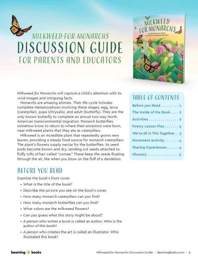 This FREE six-page illustrated Discussion Guide provides guidance for teachers, educators, parents, etc. Includes: What to Consider Before You Read, Evaluating the Book, Poetry Lesson Plan, Environmental Information, Movement Activities, Sharing Experiences, and a Glossary. Pairs with elementary-school STEM curriculum.